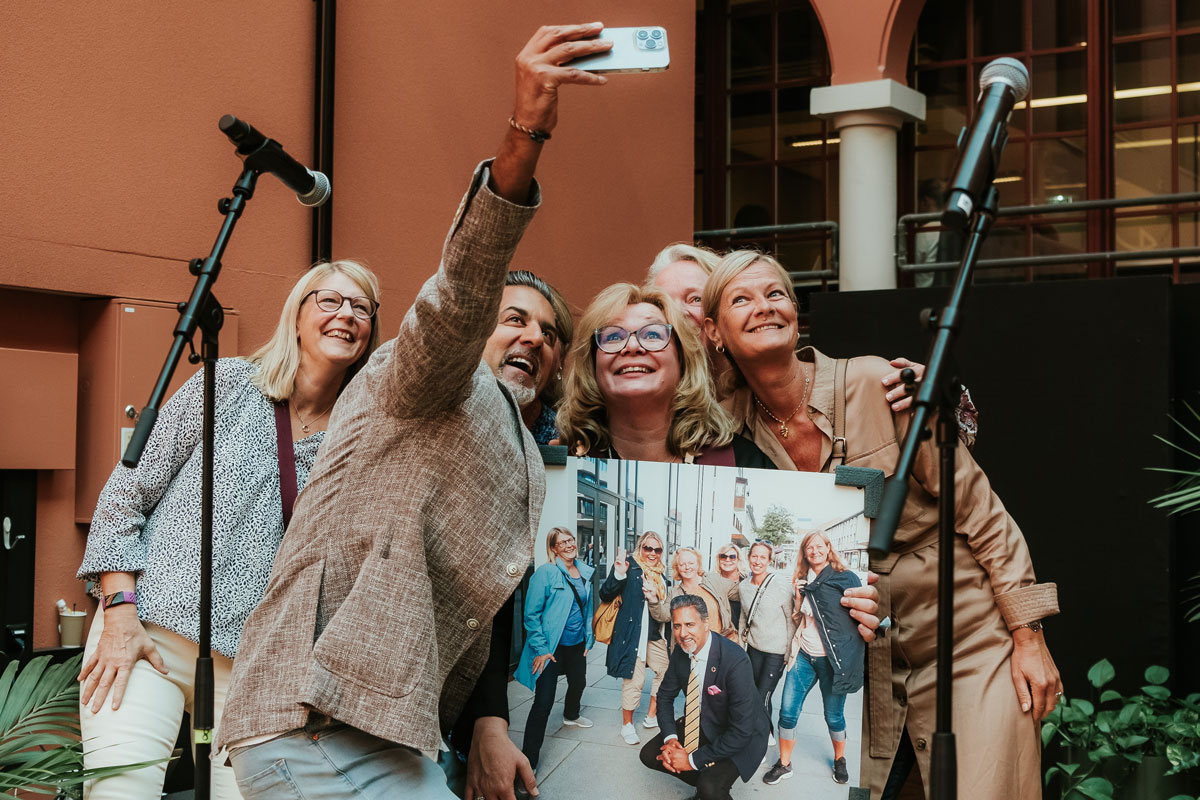 Lind var dagens konferansier både under seremonien og under minglingen i etterkant. Hun minnet den nye rektoren på at jobb ikke er hele livet, og hadde invitert Mezas beste venninner opp på scenen.