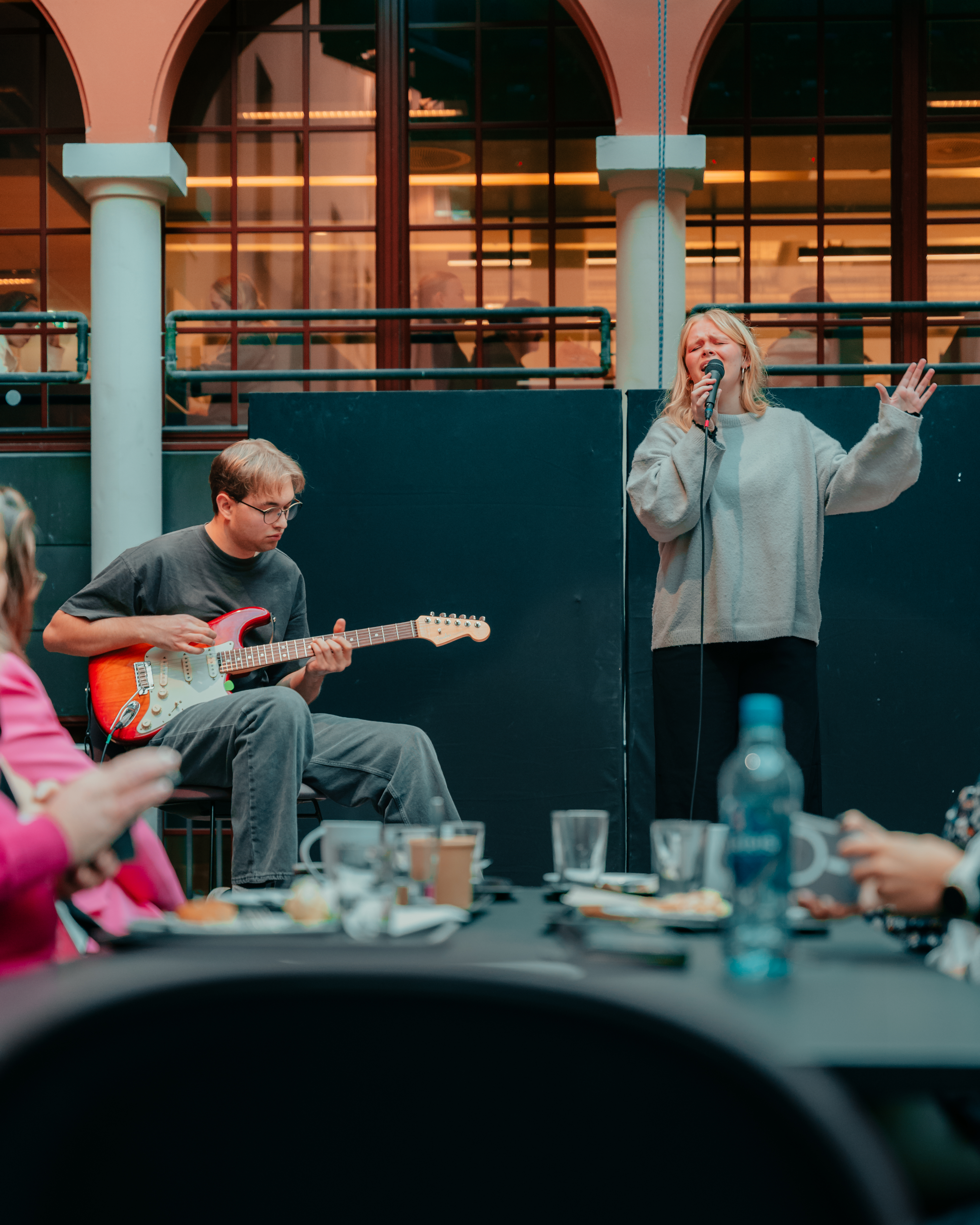 Dagen fortsetter med både musikkinnslag fra studenter, stand fra AFSO og snutekos fra terapihundene våre.