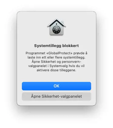 “System software from developer Palo Alto Networks was blocked.” - Close System Settings.