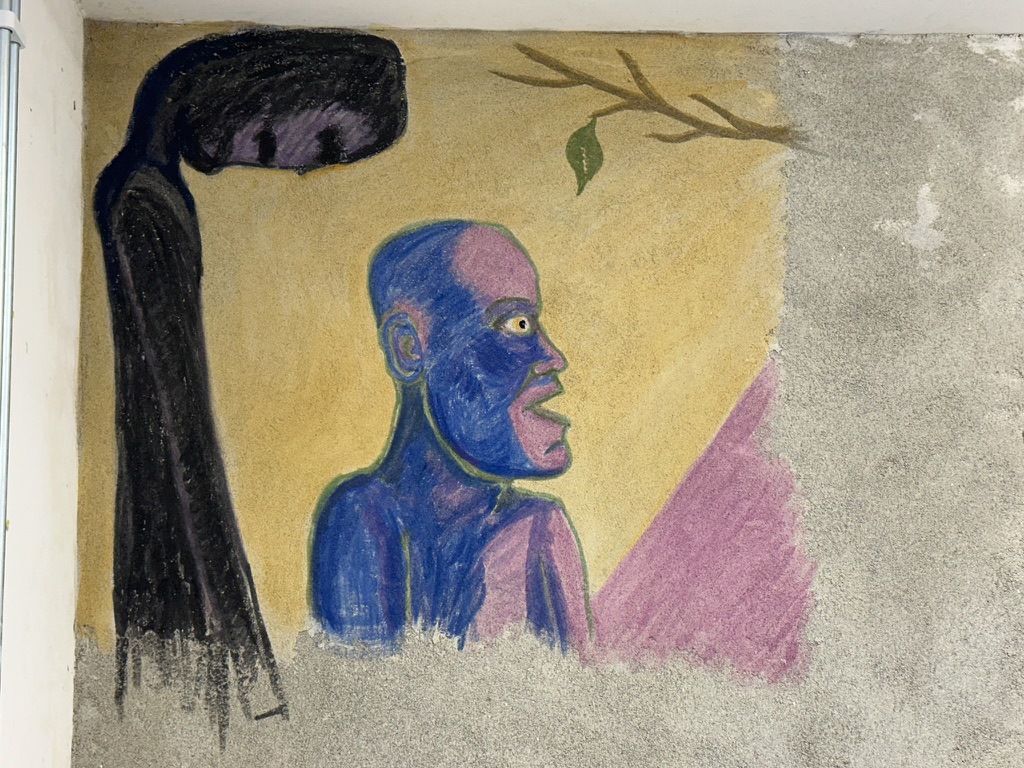 Han mistet øyet i en skyteulykke da han var ungdom. Dette var gjort som en del av et kurs freskomaleri som varte to uker. Det ble ledet av Mikael Øye Hegnar. Med på kurset var kunstnerne Stella Vallik og Frithjof Hoel som laget sine egne malerier. Freskomaling handler om planlegging og tilstedeværelse. En tung og langsom prosess, der to lag med mørtel skal opp på veggen, før man kan begynne å male. Det er vasking. Det er pussing. Det er svetting og såre muskler. Det er fysisk håndverk som skaper kunst for evigheten.