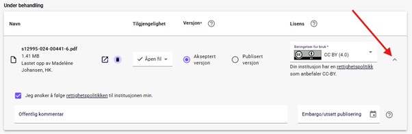- Last opp den publiserte versjonen med CC lisensen som er satt. Du kan lese mer om CC lisenser på creativecommons.no.