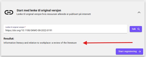 3. Prøv først å registrere med lenke til original versjon. Lim inn DOI eller lenke til den publiserte versjonen.