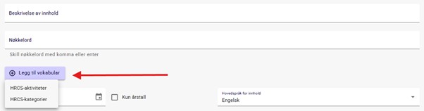 - Nøkkelord: Legg til nøkkelord eller kopier fra originalen. For medisin- og helsefag kan du bruke eksisterende vokabular (figur 5).