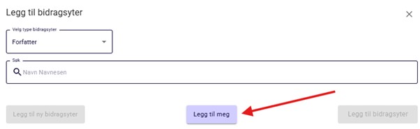 - For å legge til ny bidragsyter, klikk på "Legg til bidragsyter". For å legge til deg selv, trykk på knappen "Legg til meg" eller søk opp navnet på bidragsyteren du skal legge til (figur 8).