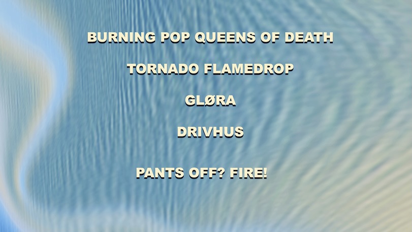 Bandene som opptrer: Burning Pop Queens of Death, Tornado Flamedrop, Gløra, Drivhus og Pants off? Fire!