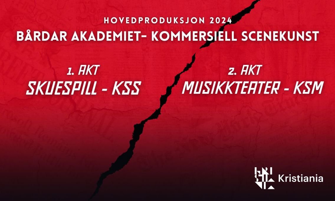 Bårdar Akademiet presenterer hovedproduksjonene til fagskoleutdanningene Bårdar Akademiet-Kommersiell Scenekunst, musikkteater (KSM) & skuespill (KSS).