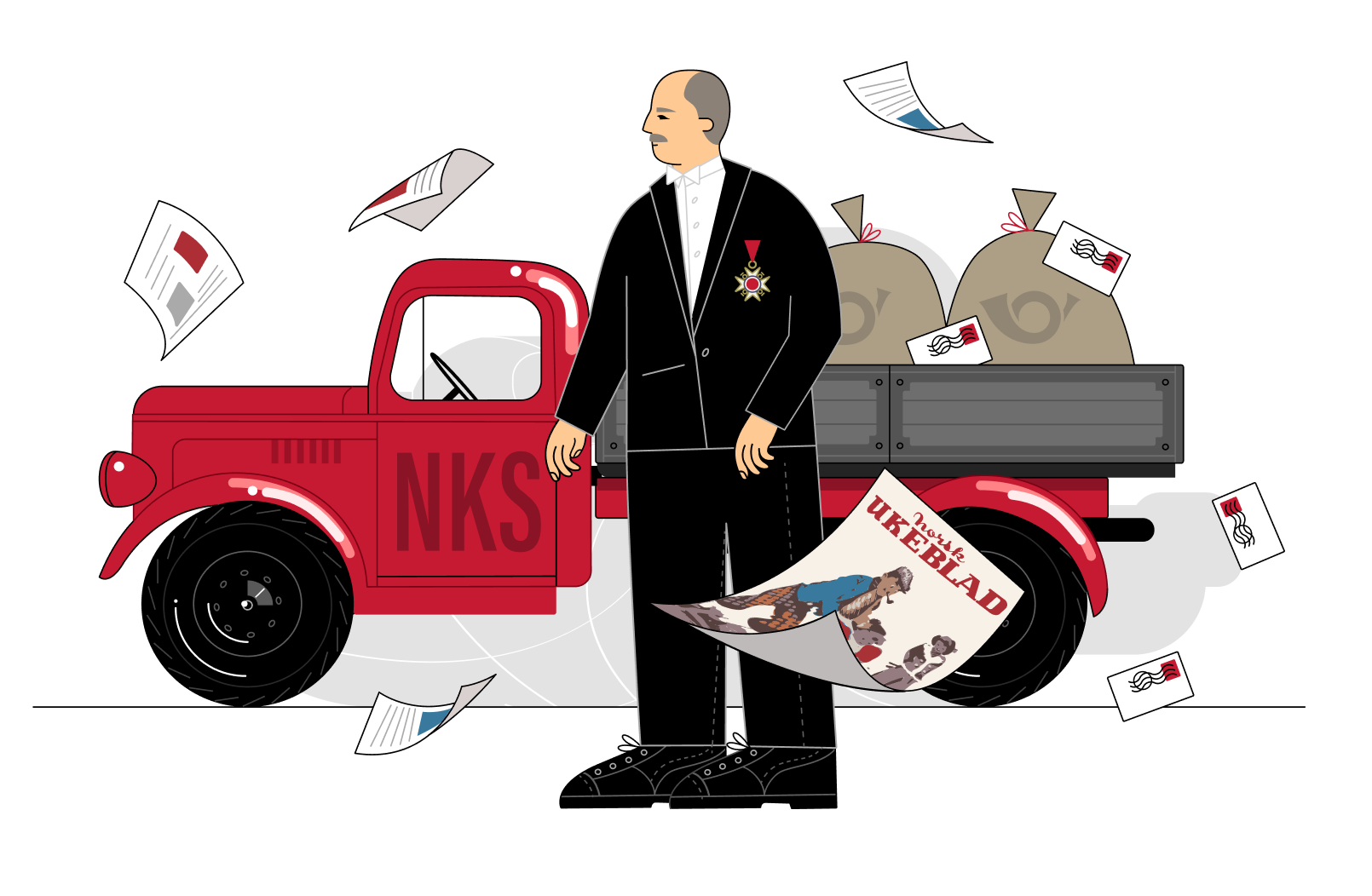 En tegning på forsiden av Norsk Ukeblad brakte Ernst G. Mortensen i harde avhør. Den illegale virksomheten ble etter hvert avslørt og Ernst G. Mortensen og flere måtte flykte til Sverige.
